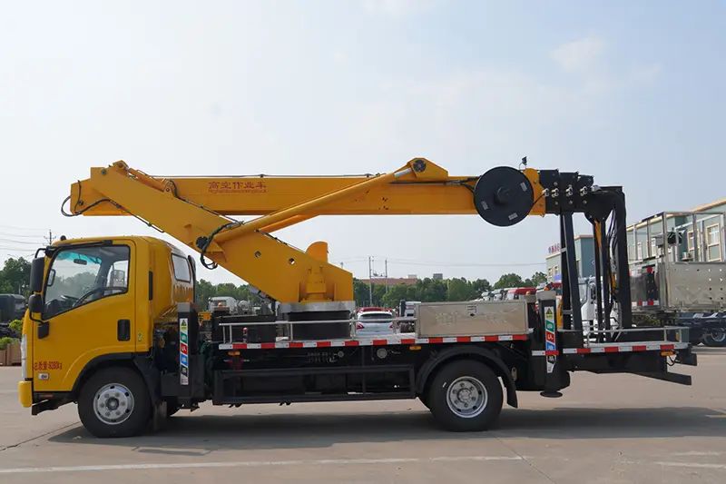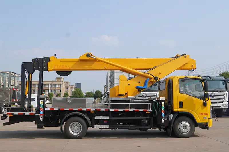 이 22m 고소 작업 플랫폼 트럭에는 작동 안전을 보장하기 위한 안전 시스템 전체 세트가 장착되어 있습니다. 상부 및 하부 차량 인터록 장치, 비상 전기 유압 펌프, 양방향 유압 잠금 장치 및 붐 우발적 낙하를 방지하는 밸런스 밸브; 전복 위험을 방지하기 위한 실시간 기울기 모니터링을 위한 차량 레벨 게이지; 자동 플랫폼 레벨링을 위한 등량 실린더 레벨링 시스템; 지능형 부하 제한 및 위험한 작동 경보 시스템과 엄격한 공장 동적 및 정적 부하 테스트를 통해 모든 작업 조건에서 절대적인 안전을 보장합니다.