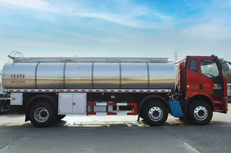Hubei Runli 식용유 운송 트럭 - 프리미엄 중국 공급 업체 공장 직접 도매 가격. 260HP Dachai 엔진, FAW 8단 변속기, 16.99m³ 스테인리스 스틸 탱크. 304 2B 식품 등급 소재, 14.1T 페이로드 용량. 식용유 물류 및 대량 운송에 적합합니다. 신뢰할 수 있는 중국 제조업체의 최고의 가치 유조선 트럭. 대량 조달, 경쟁력 있는 가격, 안정적인 애프터 서비스 지원에 이상적입니다.